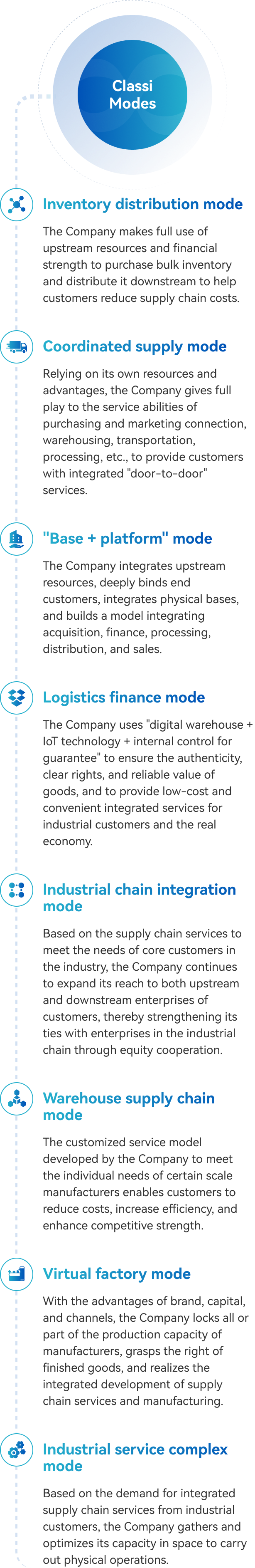 The Company belongs to the production-oriented service industry, providing comprehensive, multi-level, and personalized supply chain integration services for industrial customers.